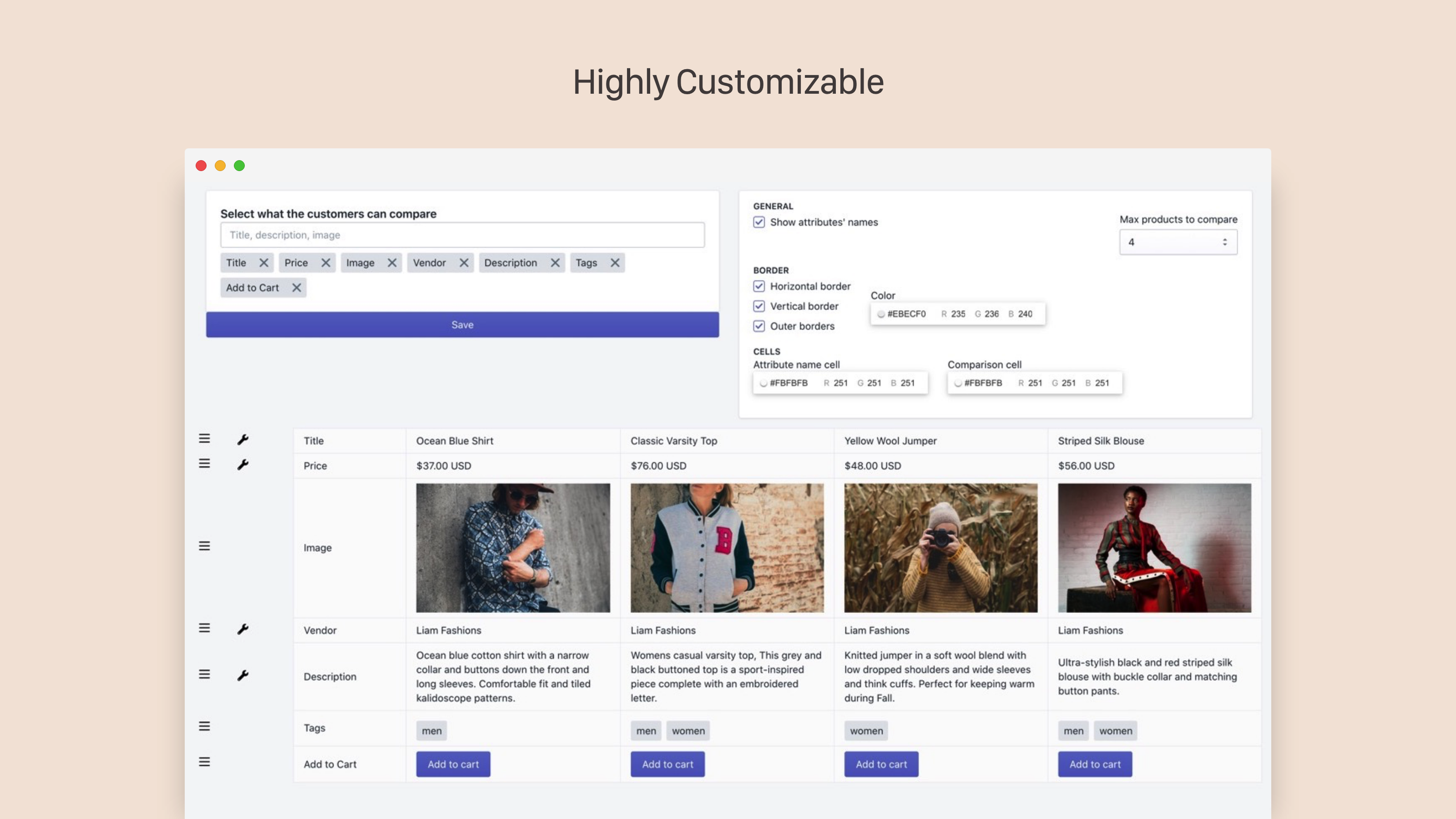 Let customers compare your products side by side.